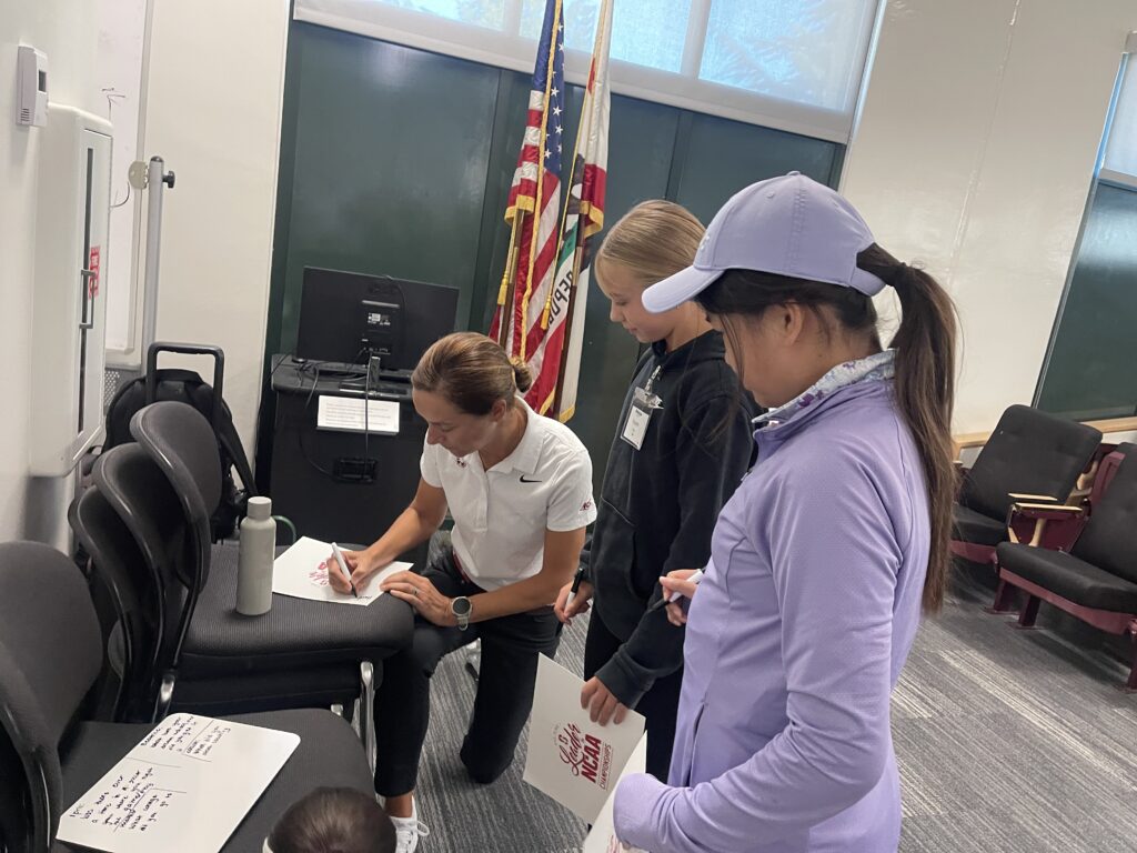 After lunch the group moved to Stanford’s Siebel Varsity Golf Training Complex. Here the Stanford Women’s Golf Team helped lead golf clinic stations. Once the golf clinic was over, the girls had a Q&A/autograph session with the team.